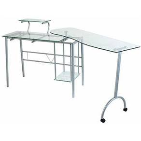 Estação de Trabalho Office Móbile YF-CD40 em Aço e Vidro Cinza – Importado. Essa estação toda em vidro possui o tampo direito extensível, deixando o produto maior quando necessário ou mais compacto. Ideal para organizar seu Home Office.