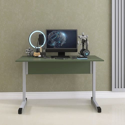 Mesa de Escritório Reta 120cm com Pé Tubular em Aço Sálvia/Cinza -