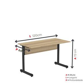 Mesa de Escritório Reta 120cm com Pé Tubular em Aço Noce Naturalle/Preto -