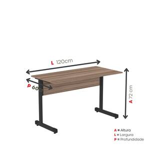 Mesa de Escritório Reta 120cm com Pé Tubular em Aço Walnut/Preto -