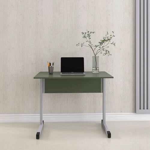 Mesa de Escritório Reta 90cm com Pé Tubular em Aço Sálvia/Cinza -