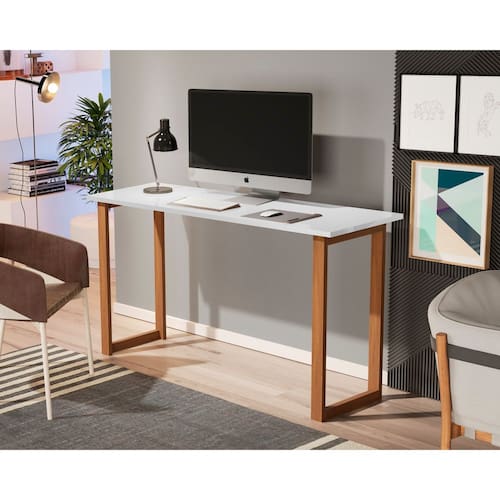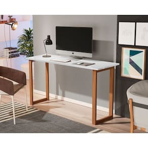 Mesa De Estudo Office 1.20cm Pés De MadeiraA peça que traz toda praticidade que você precisa enquanto você a utiliza para trabalho ou estudos, tanto em seu escritório, quanto em seu home office.A decoração se tornou algo importante não só para casa, mas para escritórios também, se sentir a vontade no local que passamos a maior parte do dia é de extrema importância.A mesa é produzida com tampo em MDF e os pés em madeira maciça, prática, moderna e linda é o que falta para transformar seu ambiente de trabalho e deixar sua sala ainda mais sofisticada.Características do produto:Tampo 100% MDF de 15mm com fita de bordaPés de madeira maciça e pintura anti umidadeDimensões do produto montadoAltura: 76cmLargura: 1.20cmProfundidade: 45cm3 meses de garantia O produto vai desmontado e acompanha manual de montagem.