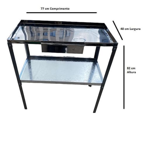 A mesa é feita em aço inoxidável de alta qualidade, o que a torna resistente e durável para o uso contínuo em seu comércio. Além disso, o inox é um material fácil de limpar e higienizar, garantindo um ambiente seguro e limpo para a preparação dos alimentos.