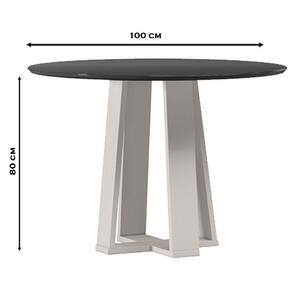 Mesa de Jantar 100x100 cm Isabela com Vidro Off White Preto New Ceval