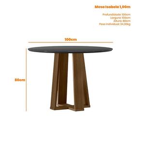 Mesa de Jantar 100x100 cm Isabela com Vidro Imbuia Preto – New Ceval