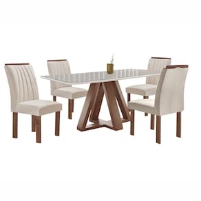 Mesa Kyra 120cm com 4 Cadeiras Arizona e Tampo Vidro Off White – Lojas Curitibanas