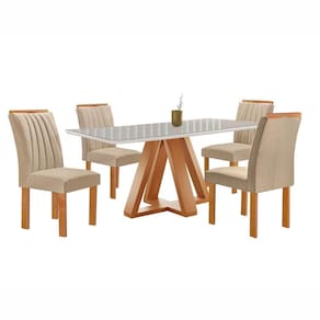 Mesa Kyra 120cm com 4 Cadeiras Arizona e Tampo Vidro Off White Lojas Curitibanas
