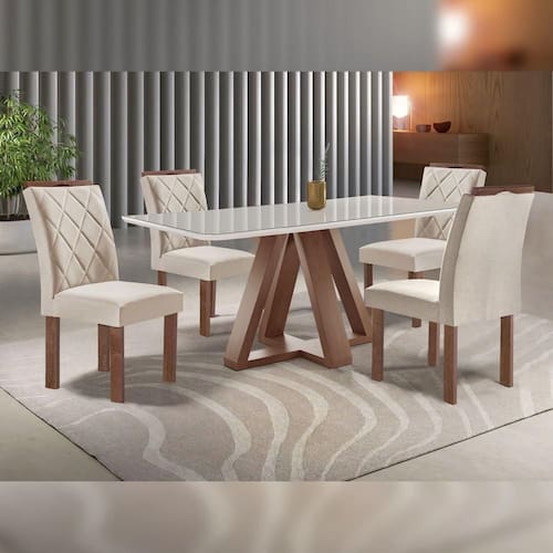 Mesa Kyra 120cm com 4 Cadeiras Arthus e Tampo Vidro Off White Lojas Curitibanas