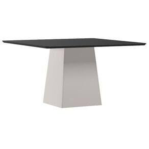 Mesa de Jantar 135x135 cm Barbara com Vidro Off White Preto New Ceval