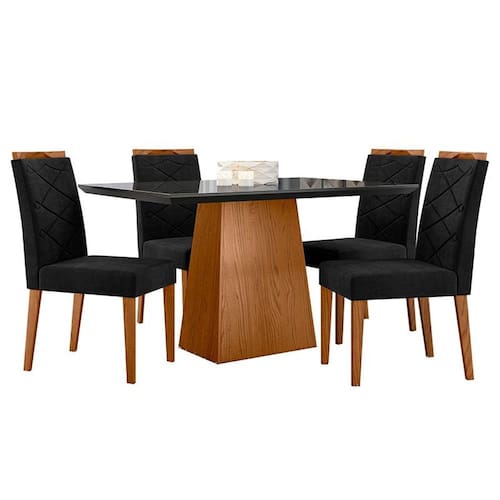 Mesa de Jantar 135x90cm Bárbara com Vidro e 4 Cadeiras Caroline Ype Veludo Preto – New Ceval