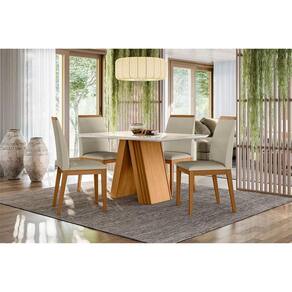 Está montando sua sala de jantar? Então apresentamos para você este belo conjunto composto pela mesa de jantar com quatro cadeiras da linha Fernanda. A mesa em MDF com 135cm acomoda perfeitamente até quatro pessoas. Seu tampo também em MDF com vidro 3mm aplicado confere um visual limpo e refinado. As cadeiras são em madeira. O assento e o encosto são estofados com espuma D23, oferecendo conforto. O revestimento em tecido de veludo adiciona um toque de luxo e aconchego. Fabricados pela New Ceval, são desenvolvidos com materiais de alta qualidade sendo uma excelente escolha para quem busca qualidade, conforto e design. Confira e garanta o seu!
