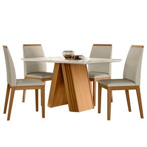 Mesa de Jantar 135x90cm com Vidro Ype Off White e 4 Cadeiras Ambiente Fernanda Ype Veludo Nude – New Ceval