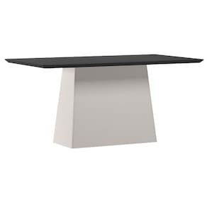 Mesa de Jantar 160 cm Barbara com Vidro Off WhIte Preto - New Ceval - Bege