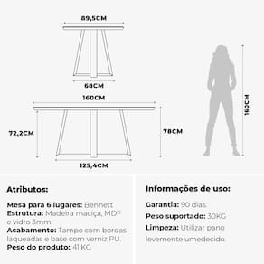 Uma escolha que valoriza seu espaço com charme e versatilidade! Acabamento: Verniz Ambiente Principal: Sala de Jantar codigo_ean: 7900288285980 Complexidade da Montagem: Média: pode ser montado por mais de uma pessoa e/ou necessite de maior conhecimento para montagem Cor: Nartural/ Off White Gloss Cor do Produto: Nartural/ Off White Gloss Design da Base: Cruz Dobrável: Não Escala de Brilho: Fosco Extensível: Não Itens Inclusos: 1 Mesa, Kit Ferragens e Manual de Montagem Linha ou Coleção: Bennett Manual de Montagem e Instalação: https://product-hub-prd.madeiramadeira.com.br/983777/documents/695ff946-1c73-4566-bc50-bb6015f44438281866150521744145326014.pdf Marca: Província Material da Base: Madeira Maciça Material do Tampo: Vidro/MDF Material Principal: Madeira Maciça Necessita Montagem: Sim Origem do Produto: Nacional Peso: 45,32 kg Possui Rodízio: Não Possui Vidro: Sim Recomendações de Uso, Manutenção e Limpeza: Limpe a superfície regularmente com um espanador, aspirador de pó suave ou um pano macio levemente umedecido com água e sabão neutro. Finalize com um pano seco. Evite o uso de produtos químicos, abrasivos, solventes, esponjas de aço ou produtos de limpeza doméstica, pois podem comprometer o acabamento. Mantenha o móvel no chão, protegido da umidade excessiva, luz solar direta e fontes de calor. Ao movimentar a peça, levante-a cuidadosamente para evitar danos aos pés. Não arraste, nem se apoie ou escale o móvel. Sistema de Montagem: Você vai precisar de uma Chave Philips e parafusadeira. O Kit de Acessórios e Manual de Montagem, acompanham à peça. Suporta Até (kg): 30 kg Tipo de Madeira Maciça: Tauari Tipo de Madeira Maciça da Base: Tauari
