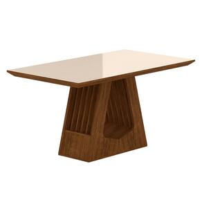 Acabamento Base: Pintura UV Texturizada Acabamento Tampo: Pintura UV Texturizada/Alto Brilho Material da Base: MDP/MDF 15mm Material do Tampo com suas Molduras: MDF 15mm Tonalidade da Mesa: Freijó/Off Premium NÃO possui vidro NÃO possui cadeiras
