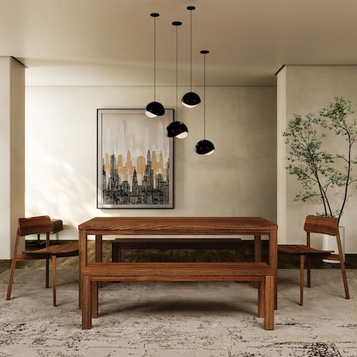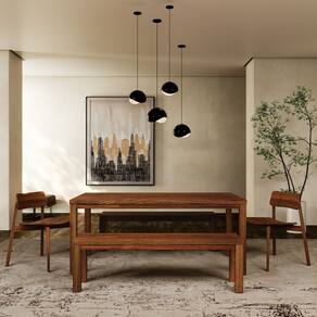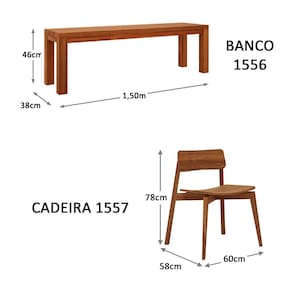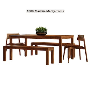 Mesa de Jantar 180cm 1555NE com 2 Cadeiras 1557NE e 2 Bancos 1556NE Nature Rústico Escuro Finestra - Marrom