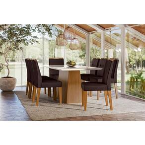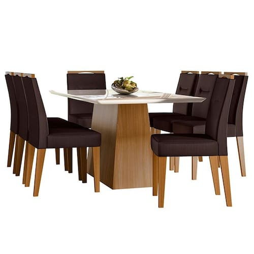 Mesa de Jantar 180cm Bárbara com Vidro Ype Off White e 8 Cadeiras Itália Ype Veludo Café – New Ceval