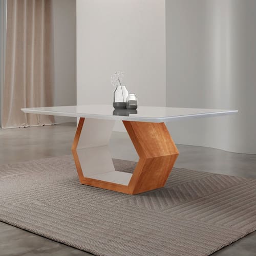 ( Mesa avulsa, não acompanha cadeiras. ) Base de madeira tauari, com acabamento de lâmina de madeira cinamomo com enchimento interno, e detalhe em mdf laqueado. Tampo feito de mdf laqueado com reforço de madeira tauari, e vidro serigrafado off white de 0,4cm temperado. Embalagem reforçada para manter a qualidade do produto. Acabamento: Pintura Acabamento da Base: Pintura Acabamento do Tampo: Laca Ambiente Principal: Sala de Jantar codigo_ean: 7900288232212 Complexidade da Montagem: Média: pode ser montado por mais de uma pessoa e/ou necessite de maior conhecimento para montagem Cor: Laqueado Off White/ Cinamomo Imbuia Cor do Produto: Laqueado Off White/ Cinamomo Imbuia Dobrável: Não Escala de Brilho: Semi-Brilho Espessura do Tampo: 40 mm Extensível: Não Informações Complementares: Produto de madeira maciça tauari e vidro temperado com design moderno para maior cuidado com o cliente. Itens Inclusos: 1 Mesa e Kit Ferragem Linha ou Coleção: Sarah Manual de Montagem e Instalação: https://product-hub-prd.madeiramadeira.com.br/826245708/documents/5db28c65-48df-45ce-860c-60b12dbcfdce112020manual20de20montagem.pdf Marca: Mobilare Material da Base: Madeira Maciça Material do Tampo: Madeira Maciça Material Principal: Madeira Maciça Medida da Base (A x L x P): 76,5x116x44cm Medida do Tampo (L x C x E): 180x90x4cm Necessita Montagem: Sim Origem do Produto: Nacional Peso: 76,5 kg Possui Portas: Não Possui prateleira: Não Possui Rodízio: Não Possui Suporte Giratório: Não Possui Vidro: Sim Recomendações de Uso, Manutenção e Limpeza: Limpar com pano seco Sistema de Montagem: Parafusos Suporta Até (kg): 80 kg Tipo de Madeira Maciça: Tauari Tipo de Madeira Maciça da Base: Tauari Tipo de Madeira Maciça do Tampo: Tauari