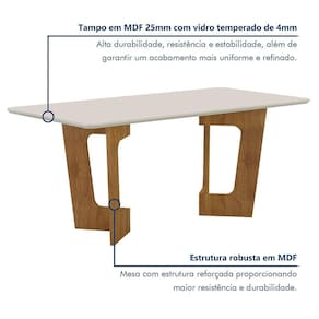 Mesa De Jantar 180cmx90cm Tampo De 25mm Liz Valdemoveis Cinamomo/off White