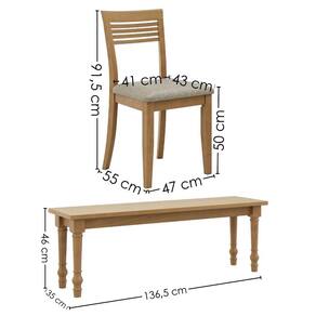 Conjunto de Jantar Rubi, completo, autêntico e perfeito para compor sua sala de jantar com harmonia que complementa e toque rústico que eleva. O conjunto conta com estrutura em Madeira Maciça Taeda (presença calorosa, toque orgânico) e acabamento em pintura brilho 5%. Com destaque ao tampo e saias de 25 mm, além de elegantes pés torneados com 80 mm de espessura. Os bancos suportam até 200kg cada e contam com assentos em madeira maciça de 25 mm. As cadeiras, por sua vez, são estofadas com espuma D28 (5 cm de espessura) e revestidas em tecido Linho (textura leve e agradável). Destaque fica para o encosto, anatômico e 100% Madeira Maciça, com detalhe ripado horizontal reforçando o design contemporâneo da peça. Cada cadeira suporta até 120 kg por unidade. Conjunto será entregue em 07 volumes.