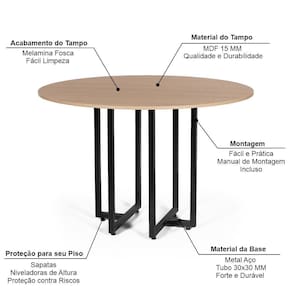Capacidade Ideal para 6 Pessoas: Com 120 cm de diâmetro, esta mesa redonda oferece um excelente espaço para refeições e encontros, acomodando até 6 pessoas confortavelmente. O formato circular facilita a conversa e suaviza o layout do seu ambiente.