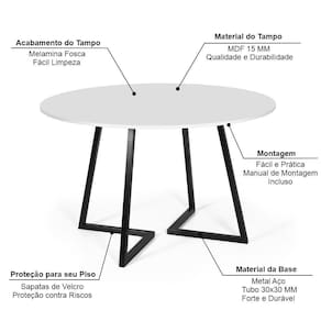 Mesa de Jantar 4 Lugares 120cm Redonda Industrial Rigo - Straub Web Branca -