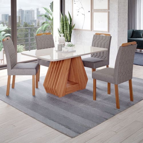 - Acompanha: Mesa de Jantar, 4 Cadeiras, Kit Ferragens e Manual de Montagem