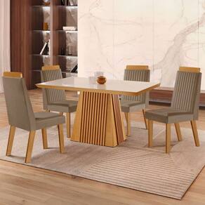 O(a) Mesa de Jantar 4 Lugares áustria Ripado com Vidro Castanho/Cinamomo/Suede Capuccino - Lj Móveis é produzido em MDF na escala de brilho Semi-Fosco, e possui um grau de dificuldade de montagem: Médio.