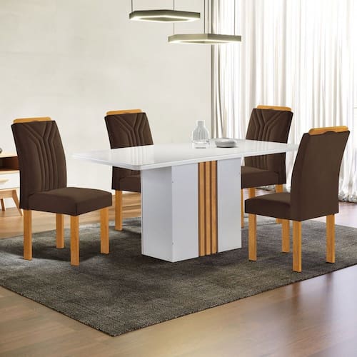 - Acompanha: 1 Mesa + 4 Cadeiras + Manual de Montagem + Kit Ferragens