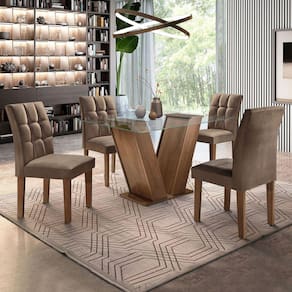 O(a) Mesa de Jantar 4 Lugares Classic/Vitória com Vidro Chocolate/Animale Marrom - Cel Móveis é produzido em MDF e MDP na escala de brilho Fosco, e possui um grau de dificuldade de montagem: Médio.