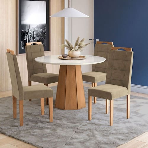 O(a) Mesa de Jantar 4 Lugares Dafine com Vidro Canela/Off White/Bege - Kappesberg Jantar é produzido em MDP e Madeira Maciça na escala de brilho Fosco, e possui um grau de dificuldade de montagem: Médio.