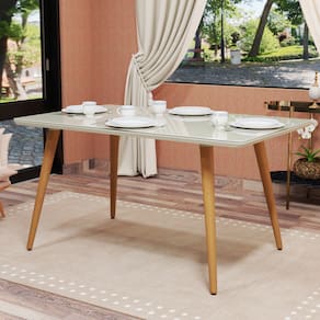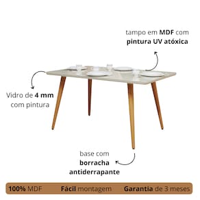 Diferenciais Design elegante e moderno: pés palito retrô combinados com tampo de vidro sofisticado. Formato retangular: ideal para otimizar espaços e acomodar melhor os utensílios na mesa. Durabilidade e resistência: estrutura em MDF de alta qualidade e vidro de fácil manutenção. Fácil de limpar: tampo de vidro que facilita a remoção de sujeira e manchas. Versatilidade na decoração: combina com diferentes estilos, do clássico ao contemporâneo.