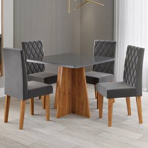 O(a) Mesa de Jantar 4 Lugares Evah com Vidro Marrom/Grafite/Veludo Cinza - Viero Móveis é produzido em MDF e MDP na escala de brilho Semi-Brilho, e possui um grau de dificuldade de montagem: Médio.