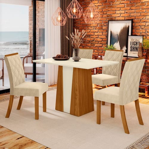 O(a) Mesa de Jantar 4 Lugares Katy Natural/Off White/Linho - Pnr Móveis é produzido em MDF e MDP na escala de brilho Brilho e Fosco, e possui um grau de dificuldade de montagem: Médio.