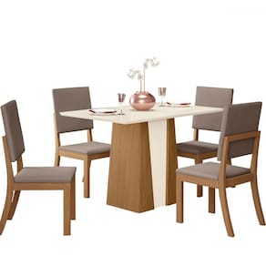 O(a) Mesa de Jantar 4 Lugares Lavínia Milla Natural/Off White/Marrom Amêndoa - Pnr Móveis é produzido em MDP na escala de brilho Fosco, e possui um grau de dificuldade de montagem: Médio.