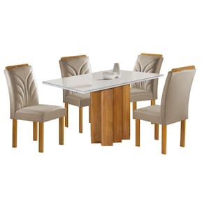 O(a) Mesa de Jantar 4 Lugares Lorena Carolina com Vidro Cinamomo/Off White/Bege Claro - Cel Móveis é produzido em MDF na escala de brilho Fosco, e possui um grau de dificuldade de montagem: Médio.
