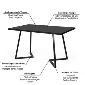 Mesa de Jantar 4 Lugares Retangular 140x75 Industrial Rigo - Straub Web - Preto