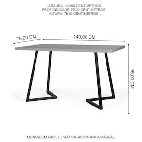 Mesa de Jantar 6 Lugares Retangular 140x75 Industrial Rigo - Straub Web