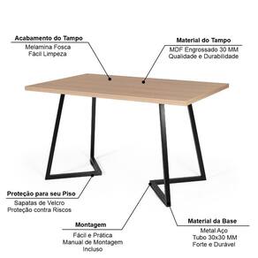 Mesa de Jantar 6 Lugares Retangular 140x75 Industrial Rigo - Straub Web