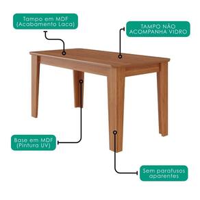 Mesa de Jantar Estela, presença que transforma o ambiente com requinte e design atual. Conta com estrutura 100% em MDF de 15 e 25 mm em pintura UV. Possui tampo em MDF de 25 mm com acabamento Laca (TAMPO NÃO ACOMPANHA VIDRO) e bordas chanfradas (suportando até 40kg distribuídos no tampo) saias em MDF 15 mm e base sem parafusos aparentes. Além de pés em MDF 25 mm. Modelo retangular ideal para até 4 lugares (cadeiras não inclusas). Produto será entregue em 02 volumes.