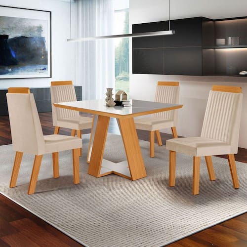 - Acompanha: Mesa de Jantar + 4 Cadeiras + Kit Ferragens + Manual de Montagem