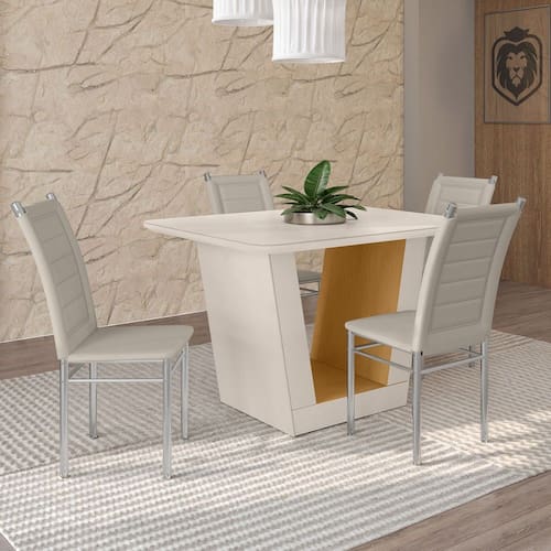 - Acompanha: Mesa de Jantar + 4 Cadeiras + Kit Ferragens + Manual de Montagem