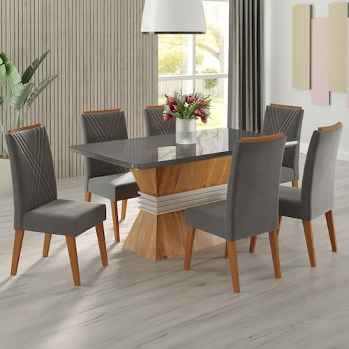 - Acompanha: Mesa + 6 Cadeiras + Kit Ferragens + Manual de Montagem