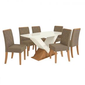 O(a) Mesa de Jantar 6 Lugares Camélia com Vidro Canela/Off White/Capuccino - Kappesberg Jantar é produzido em MDF e MDP na escala de brilho Fosco, e possui um grau de dificuldade de montagem: Médio.