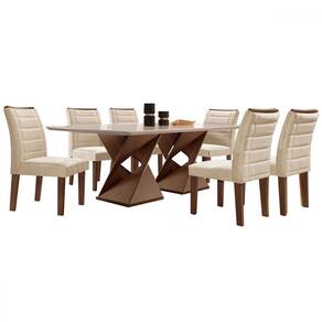 O(a) Mesa de Jantar 6 Lugares Espanha com Vidro Chocolate/Off White/Bege - Loja é produzido em MDF na escala de brilho Fosco, e possui um grau de dificuldade de montagem: Médio.