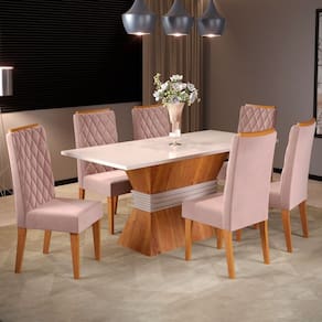O(a) Mesa de Jantar 6 Lugares Lia Marrom/Blonde/Veludo Rosa - Pnr Móveis é produzido em MDF e MDP na escala de brilho Semi-Brilho, e possui um grau de dificuldade de montagem: Médio.