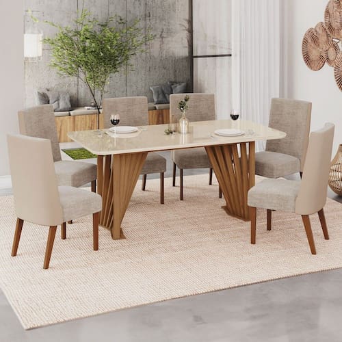 O(a) Mesa de Jantar 6 Lugares Lívia/Anne Natural/Corano Bege/Creme - Pnr Móveis é produzido em MDF e MDP na escala de brilho Fosco, e possui um grau de dificuldade de montagem: Médio.