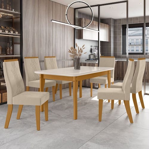 - Acompanha: Mesa de Jantar + 6 Cadeiras + Kit Ferragens + Manual de Montagem