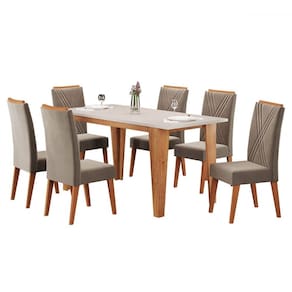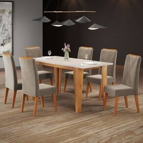 O(a) Mesa de Jantar 6 Lugares Maine Blonde/Pérola - Loja é produzido em MDF, MDP e Madeira Maciça na escala de brilho Semi-Brilho, e possui um grau de dificuldade de montagem: Médio.