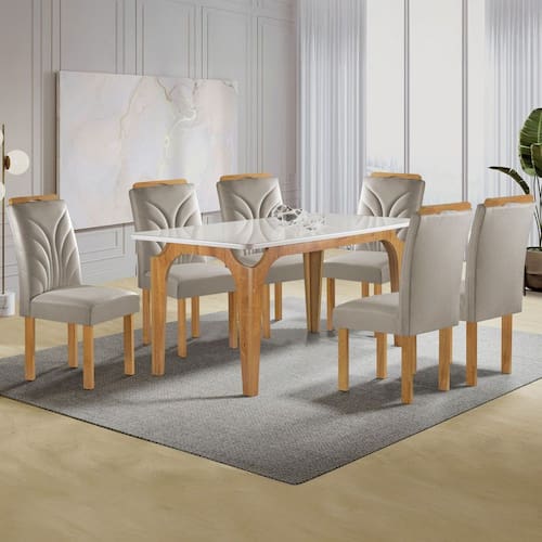 - Acompanha: 1 Mesa + 6 Cadeiras + Manual de Montagem + Kit Ferragens